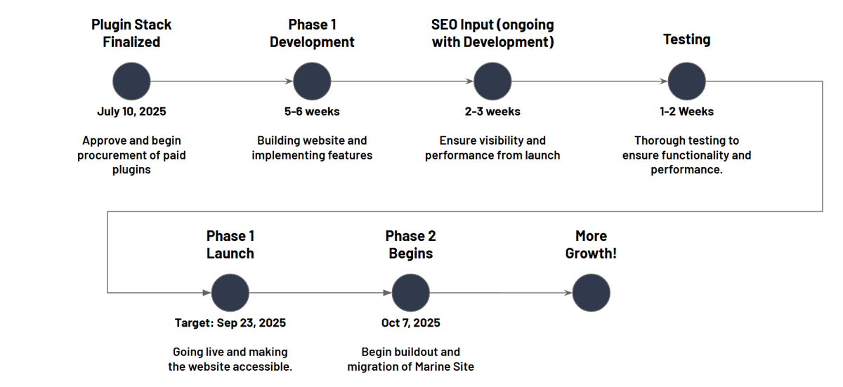 The audit concluded with a full redesign estimate: 14 to 29 weeks end-to-end, broken into Discovery, UX Design, Development, Testing, and Launch phases. That wasn’t a number I invented – it was the honest shape of the work the findings demanded. It became the framework for the proposal that followed.