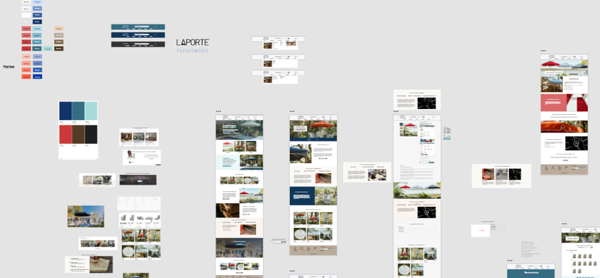 Running parallel to the UX work, a dedicated member of the marketing team took the lead on visual execution — developing a full Brand Style Guide for LaPorte Furnishings that would govern every touchpoint going forward. Typography, color system, photography guidelines, component usage. Not just a document for this project, but a foundation for the next ones.